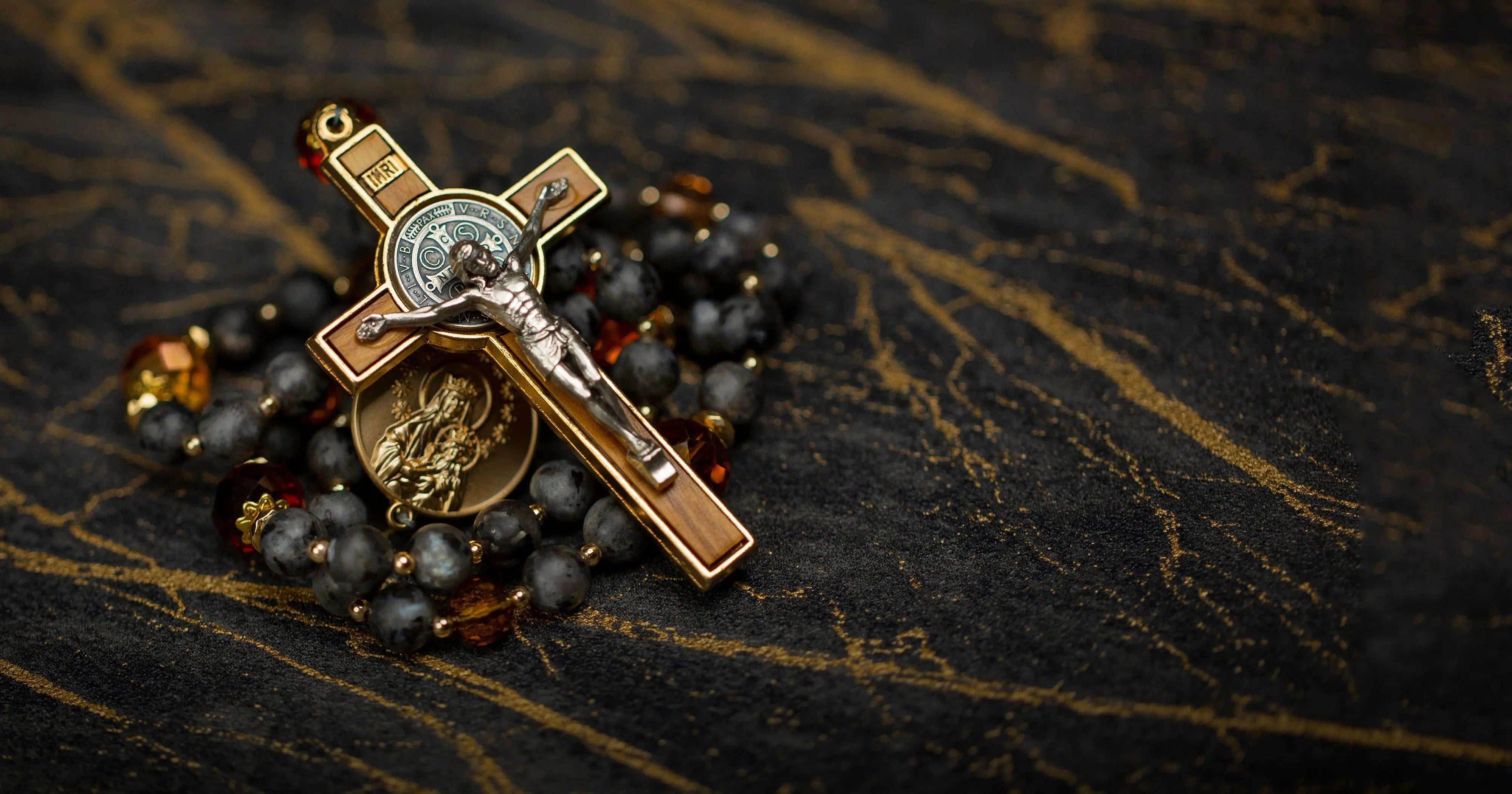 For all four of our rosaries we took inspiration from some of the most iconic Catholic churches in the world, translating their monumental interiors into a string of beads using stone, glass, and metal - the very materials that were used to build those splendid churches.